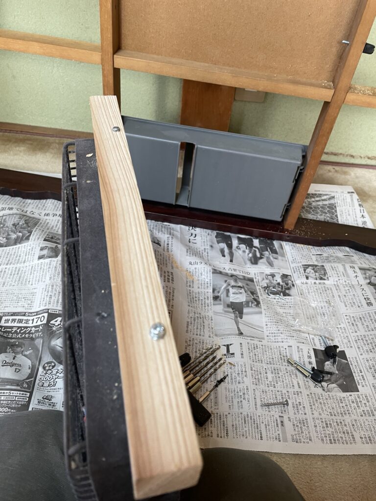 水栓の再取り付けとコタツヒーターの取替えサイズ合わないから、木材で補修。