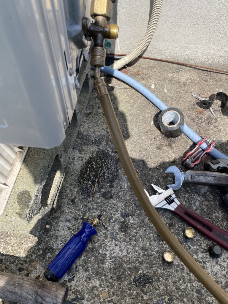 エアコン化粧カバー取付 2024 3/16 未分類 2024-03-16 外壁工事が終わって、黒色のカバーで仕上げ一階が2台と2階からの立ち下ろし工事。真空引きしてガスを入れるとガス漏れしてて、油とガスが止まらない、虫ゴム悪くなってるから交換しておく。 関連 未分類 よかったらシェアしてね! URLをコピーしました! URLをコピーしました! ライティングレール追加工事OS247002.OELIC追加 沢庵漬け この記事を書いた人 たか 関連記事 チラーユニットのファンモーターが、ガラガラ鳴ってて 2025-08-17 ハイゼット軽トラの荷台、前のフックを簡単に増やす 2024-10-08 タイラバ 2024-09-18 エアコン工事RAS-HM28H 2024-06-09 あの洗剤🤣 2024-06-08 エアコン取り外し 2024-06-08 簡易水洗工事 2024-06-08 網戸交換と電気工事 2024-04-15 コメント コメントする コメントをキャンセルコメント ※ 名前 ※ メール ※ サイト 次回のコメントで使用するためブラウザーに自分の名前、メールアドレス、サイトを保存する。 Δ